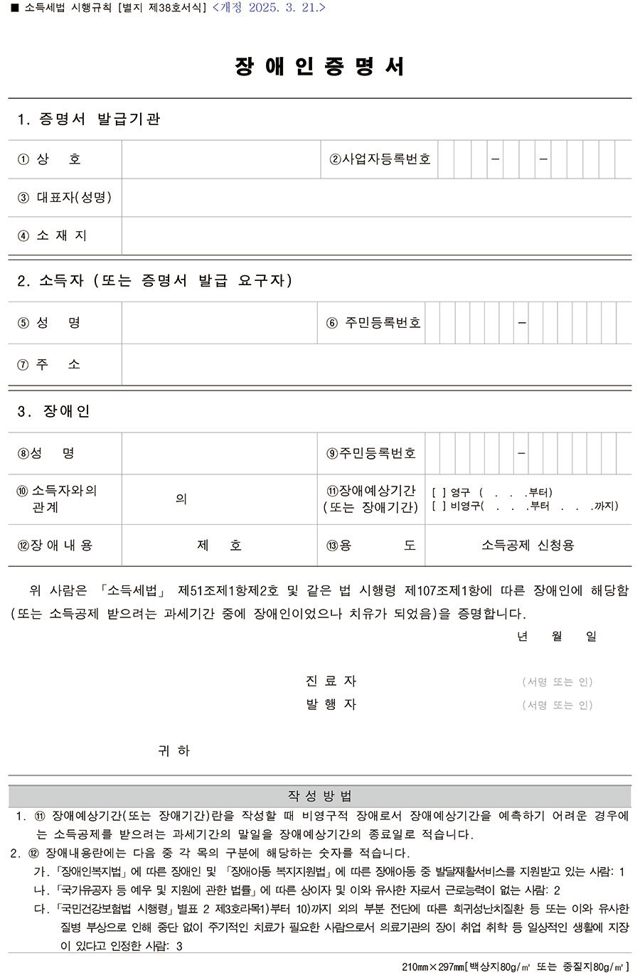 [그림] 장애인증명서 양식