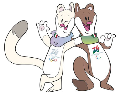 마스코트는 초중학생을 대상으로 한 아이디어 공모에서 공개투표를 거쳐 담비 남매 ‘티나’와 ‘밀로’로 결정했다. 티나는 올림픽, 밀로는 패럴림픽을 상징하며 각각 코르티나담페초와 밀라노의 이름에서 착안했다.
